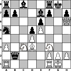 game notation in PGN-format [Event "3. Norderstedter DENK MAL Open 2012"] [Site "www.myChess.de"] [Date "2012.02.08"] [Round "1"] [White "UPS"] [Black "Haki"] [ECO "C02"] [WhitemyELO "1625"] [BlackmyELO "1304"] [Result "1-0"] [TimeControl "10/2592000"] [WhiteDays "30"] [BlackDays "30"] [MyChessNo "79820"] 1. e4 e6 2. d4 d5 3. e5 c5 4. c3 Nc6 5. Nf3 Qb6 6. Be2 cxd4 7. cxd4 Nh6 8. Nc3 Bb4 9. O-O O-O 10. Bxh6 gxh6 11. a3 Be7 12. Qc1 Na5 13. Qxh6 Qxb2 14. Bd3 1-0 position notation in FEN-format r1b2rk1/pp2bp1p/4p2Q/n2pP3/3P4/P1NB1N2/1q3PPP/R4RK1 - - - 1 14 Captured white pieces: Captured black pieces: Click on a captured piece in order to display the desired move!