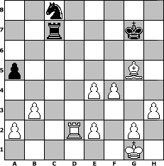 game notation in PGN-format [Event "?"] [Site "www.myChess.de"] [Date "2025.11.01"] [Round "?"] [White "Winston"] [Black "Alencar"] [ECO "B20"] [WhitemyELO "1539"] [BlackmyELO "1313"] [Result "1-0"] [TimeControl "10/2592000"] [WhiteDays "120"] [BlackDays "098"] [MyChessNo "133808"] 1. e4 c5 2. Bc4 Nc6 3. Nf3 Nd4 4. Nxd4 cxd4 5. c3 dxc3 6. Nxc3 e5 7. d4 d6 8. dxe5 dxe5 9. Qxd8+ Kxd8 10. Bxf7 Ke7 11. Bd5 Nf6 12. Bg5 Be6 13. Bxb7 Rb8 14. Bc6 Bd7 15. Bxd7 Kxd7 16. Rd1+ Kc6 17. b3 Bb4 18. Rc1 Bxc3+ 19. Rxc3+ Kd6 20. Rc4 Rbc8 21. Ra4 h6 22. Bd2 Rc7 23. O-O Rhc8 24. Ra6+ Kd7 25. f3 g5 26. h3 Ke7 27. Be3 Nd7 28. Rxh6 Rf8 29. Bxg5+ Ke8 30. Re6+ Kf7 31. Re7+ Kg8 32. Rd1 Rd8 33. Rxe5 Rdc8 34. Red5 Nb6 35. Rd8+ Kg7 36. Rxc8 Nxc8 37. Rd2 a5 38. f4 1-0 position notation in FEN-format 2n5/2r3k1/8/p5B1/4PP2/1P5P/P2RP1P1/6K1 - - - 0 38 Captured white pieces: Captured black pieces: Click on a captured piece in order to display the desired move!