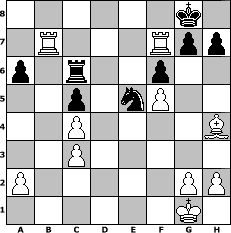 game notation in PGN-format [Event "YOUR LAST BREATH"] [Site "www.myChess.de"] [Date "2019.11.17"] [Round "1"] [White "sprinterde"] [Black "iamnothere"] [ECO "B21"] [WhitemyELO "1699"] [BlackmyELO "1432"] [Result "1-0"] [TimeControl "10/3456000"] [WhiteDays "40"] [BlackDays "39"] [MyChessNo "116324"] 1. e4 c5 2. f4 Nc6 3. Nf3 b6 4. Bc4 e6 5. O-O Bb7 6. d3 d5 7. exd5 exd5 8. Re1+ Be7 9. Bb5 a6 10. Bxc6+ Bxc6 11. Ne5 Rc8 12. f5 Nf6 13. Bg5 O-O 14. Qe2 Be8 15. Ng4 Rc7 16. Nc3 Bc6 17. Ne5 d4 18. Nxc6 Rxc6 19. Qxe7 Qxe7 20. Rxe7 dxc3 21. bxc3 Nd5 22. Ra7 b5 23. c4 bxc4 24. dxc4 Nb4 25. c3 Nd3 26. Re7 f6 27. Bh4 Ne5 28. Rb1 Rf7 29. Rb8+ Rf8 30. Rbb7 Rf7 31. Rxf7 1-0 position notation in FEN-format 6k1/1R3Rpp/p1r2p2/2p1nP2/2P4B/2P5/P5PP/6K1 - - - 0 31 Captured white pieces: Captured black pieces: Click on a captured piece in order to display the desired move!
