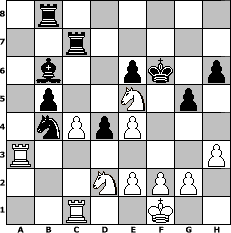 game notation in PGN-format [Event "Die Weinlese"] [Site "www.myChess.de"] [Date "2016.09.01"] [Round "1"] [White "muetoe"] [Black "Helmut48"] [ECO "B53"] [WhitemyELO "1965"] [BlackmyELO "2022"] [Result "1/2-1/2"] [TimeControl "10/1728000"] [WhiteDays "51"] [BlackDays "79"] [MyChessNo "104660"] 1. e4 c5 2. Nf3 d6 3. d4 cxd4 4. Qxd4 Nc6 5. Qe3 Nf6 6. h3 e5 7. Bc4 Be6 8. Bxe6 fxe6 9. O-O Be7 10. Re1 O-O 11. Qb3 Qd7 12. Bg5 Nh5 13. Be3 Kh8 14. c3 d5 15. Rd1 Rad8 16. Nbd2 Nf4 17. Bxf4 Rxf4 18. Qc2 a6 19. Re1 Bc5 20. b4 Ba7 21. a4 Qc7 22. Rac1 b5 23. axb5 axb5 24. Rf1 h6 25. Rfe1 Kg8 26. Qa2 Bb6 27. Qa6 Qa7 28. Qxa7 Bxa7 29. Kf1 Bb6 30. Kg1 Kh7 31. Kf1 g6 32. Ra1 Rb8 33. Kg1 g5 34. Kf1 Kg7 35. Ra6 d4 36. Ra3 Rf7 37. Rc1 Rc7 38. c4 Nxb4 39. Nxe5 Kf6 1/2-1/2 position notation in FEN-format 1r6/2r5/1b2pk1p/1p2N1p1/1nPpP3/R6P/3NPPP1/2R2K2 - - - 1 40 Captured white pieces: Captured black pieces: Click on a captured piece in order to display the desired move!