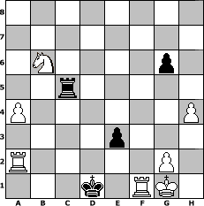 game notation in PGN-format [Event "Es weihnachtet sehr"] [Site "www.myChess.de"] [Date "2021.12.20"] [Round "1"] [White "Master1"] [Black "borsti"] [ECO "D00"] [WhitemyELO "1268"] [BlackmyELO "1311"] [Result "1-0"] [TimeControl "10/864000"] [WhiteDays "10"] [BlackDays "10"] [MyChessNo "123955"] 1. d4 d5 2. e3 Nf6 3. Bd3 Bg4 4. Nf3 e6 5. Nbd2 Bb4 6. c3 Ba5 7. O-O O-O 8. Re1 Nc6 9. e4 dxe4 10. Nxe4 Nxe4 11. Bxe4 Re8 12. b4 Bb6 13. Bxc6 bxc6 14. a4 a5 15. h3 Bh5 16. Bd2 Qd5 17. Re5 Qd6 18. Rxh5 h6 19. Rh4 f6 20. Rg4 axb4 21. cxb4 Red8 22. Bxh6 Rd7 23. Bf4 Qxb4 24. h4 Bxd4 25. Be3 c5 26. Bxd4 cxd4 27. Rxd4 Rd6 28. Rxb4 Rxd1+ 29. Rxd1 e5 30. Rc1 Ra7 31. Rbc4 Kh7 32. Nd2 Kh6 33. Ne4 Kh5 34. Ng3+ Kg6 35. Rg4+ Kf7 36. Nf5 g6 37. Ne3 f5 38. Rgc4 f4 39. Nd5 c6 40. Nb6 Ra6 41. Rxc6 Ra5 42. Rc7+ Kf6 43. R1c6+ Kf5 44. Rf7+ Ke4 45. Rc4+ Kd3 46. Rd7+ Ke2 47. Rc2+ Ke1 48. Rdd2 e4 49. Ra2 e3 50. Re2+ Kd1 51. fxe3 Rc5 52. Rf2 fxe3 53. Rf1# 1-0 position notation in FEN-format 8/8/1N4p1/2r5/P6P/4p3/R5P1/3k1RK1 - - - 1 53 Captured white pieces: Captured black pieces: Click on a captured piece in order to display the desired move!