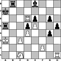 game notation in PGN-format [Event "Es weihnachtet sehr"] [Site "www.myChess.de"] [Date "2021.12.20"] [Round "1"] [White "borsti"] [Black "alpacino"] [ECO "C02"] [WhitemyELO "1311"] [BlackmyELO "1273"] [Result "0-1"] [TimeControl "10/864000"] [WhiteDays "10"] [BlackDays "10"] [MyChessNo "123935"] 1. e4 e6 2. d4 d5 3. e5 f6 4. Nf3 h6 5. Bb5+ c6 6. Ba4 Nd7 7. Bf4 f5 8. a3 Ne7 9. Nc3 a6 10. Bb3 Ng6 11. Bg3 Nb6 12. h3 Bd7 13. Qd3 Be7 14. O-O-O Qc7 15. h4 O-O-O 16. Rhe1 Kb8 17. h5 Nf8 18. Bh4 Bxh4 19. Nxh4 Be8 20. g4 fxg4 21. Rg1 Bxh5 22. Ne2 Qe7 23. Ng3 Qxh4 24. Rh1 Qg5+ 25. Kb1 Bg6 26. Qd2 Qxd2 27. Rxd2 Bf7 28. c3 g6 29. Bc2 Nc4 30. Rdd1 h5 31. a4 Nd7 32. Bd3 Ndb6 33. b3 Na3+ 34. Ka2 Nac4 35. bxc4 Nxa4 36. Kb3 Nb6 37. c5 Nd7 38. Rb1 Nf8 39. Ka4 Nd7 40. Bxa6 Ka7 41. Bxb7 Nb8 42. Rb6 Rd7 43. Bxc6 Nxc6 44. Rxc6 Rb8 45. Ne2 Rdb7 46. Rd6 Be8+ 47. Ka3 Rb2 48. Nc1 R2b5 49. Ka4 Rxc5+ 50. Ka3 Ra5# 0-1 position notation in FEN-format 1r2b3/k7/3Rp1p1/r2pP2p/3P2p1/K1P5/5P2/2N4R - - - 2 51 Captured white pieces: Captured black pieces: Click on a captured piece in order to display the desired move!