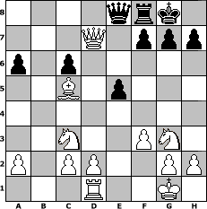 game notation in PGN-format [Event "°°°°``Der sch"] [Site "www.myChess.de"] [Date "2009.05.11"] [Round "1"] [White "Knight"] [Black "steff"] [ECO "D00"] [WhitemyELO "1086"] [BlackmyELO "1216"] [Result "1-0"] [TimeControl "10/864000"] [WhiteDays "27"] [BlackDays "26"] [MyChessNo "55561"] 1. d4 d5 2. e4 dxe4 3. Nc3 Nf6 4. f3 Nc6 5. Bb5 Bd7 6. Be3 e5 7. d5 Bb4 8. Nge2 O-O 9. dxc6 bxc6 10. Ba4 Be6 11. Bxc6 Rb8 12. O-O Bd7 13. Bxe4 c6 14. Ng3 Bd6 15. Qxd6 Rxb2 16. Rab1 Rxb1 17. Rxb1 Qa5 18. Bc5 Qd8 19. Rd1 a6 20. Bf5 Qe8 21. Bxd7 Nxd7 22. Qxd7 1-0 position notation in FEN-format 4qrk1/3Q1ppp/p1p5/2B1p3/8/2N2PN1/P1PP2PP/3R2K1 - - - 0 22 Captured white pieces: Captured black pieces: Click on a captured piece in order to display the desired move!
