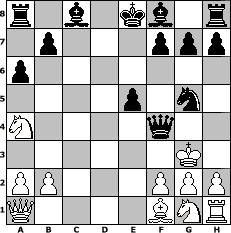 game notation in PGN-format [Event "Es weihnachtet sehr"] [Site "www.myChess.de"] [Date "2021.12.20"] [Round "1"] [White "Haneken"] [Black "skuehnel"] [ECO "B20"] [WhitemyELO "1077"] [BlackmyELO "1270"] [Result "0-1"] [TimeControl "10/864000"] [WhiteDays "07"] [BlackDays "10"] [MyChessNo "123960"] 1. e4 c5 2. d4 cxd4 3. Qxd4 Nc6 4. Qc4 e5 5. Qb5 a6 6. Qe2 Nf6 7. Be3 d5 8. Nc3 d4 9. Na4 dxe3 10. Qxe3 Nd4 11. Qg5 Nxc2+ 12. Ke2 Nxa1 13. Qc1 Nxe4 14. Qxa1 Qd2+ 15. Kf3 Ng5+ 16. Kg3 Qf4# 0-1 position notation in FEN-format r1b1kb1r/1p3ppp/p7/4p1n1/N4q2/6K1/PP3PPP/Q4BNR - kq - 5 17 Captured white pieces: Captured black pieces: Click on a captured piece in order to display the desired move!
