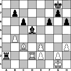 game notation in PGN-format [Event "°°°°°Auf den Fr"] [Site "www.myChess.de"] [Date "2009.04.05"] [Round "1"] [White "Joschi"] [Black "Vahl1"] [ECO "C42"] [WhitemyELO "1567"] [BlackmyELO "1732"] [Result "1/2-1/2"] [TimeControl "10/864000"] [WhiteDays "31"] [BlackDays "22"] [MyChessNo "54505"] 1. e4 e5 2. Nf3 Nf6 3. Nxe5 d6 4. Nf3 Nxe4 5. d4 d5 6. h3 Bd6 7. Bd3 Bf5 8. O-O O-O 9. Nc3 Nxc3 10. bxc3 Qd7 11. Be3 Re8 12. Re1 Nc6 13. c4 dxc4 14. Bxc4 Nb4 15. Bb3 a5 16. a3 a4 17. axb4 axb3 18. Rxa8 Rxa8 19. cxb3 Bxb4 20. Bd2 Bd6 21. Bc3 Qc6 22. Bb2 Qc2 23. Qxc2 Bxc2 24. Nd2 h6 25. Rc1 Bf5 26. Nc4 Bf4 27. Ne3 Be6 28. d5 Bxd5 29. b4 c6 30. Rd1 Bxe3 31. fxe3 Ra2 32. Rd2 f6 33. Bc3 1/2-1/2 position notation in FEN-format 6k1/1p4p1/2p2p1p/3b4/1P6/2B1P2P/r2RP1P1/6K1 - - - 1 33 Captured white pieces: Captured black pieces: Click on a captured piece in order to display the desired move!