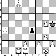 game notation in PGN-format [Event "Mai 2017"] [Site "www.myChess.de"] [Date "2017.05.04"] [Round "1"] [White "Seneca"] [Black "borsti"] [ECO "D00"] [WhitemyELO "1415"] [BlackmyELO "1189"] [Result "1-0"] [TimeControl "10/2592000"] [WhiteDays "137"] [BlackDays "149"] [MyChessNo "108095"] 1. d4 d5 2. e3 Bf5 3. Nf3 e6 4. Be2 Nf6 5. O-O Bd6 6. c4 Bb4 7. a3 Be7 8. Nc3 a6 9. Nh4 Bg6 10. Nxg6 hxg6 11. b4 Ne4 12. Nxe4 dxe4 13. Bb2 Bd6 14. Qc2 f5 15. g3 g5 16. Qb3 O-O 17. c5 Be7 18. Qxe6+ Kh8 19. Qb3 Nd7 20. d5 Nxc5 21. bxc5 Bxc5 22. Qc3 Rf7 23. Qxc5 Rf6 24. Bxf6 gxf6 25. Rac1 Rc8 26. Rfd1 b6 27. Qc3 a5 28. a4 Qd6 29. Qc6 Qd8 30. d6 Kg7 31. dxc7 Qf8 32. Qxb6 Qe7 33. Qxa5 Kg6 34. Ba6 Ra8 35. c8=Q Rxc8 36. Bxc8 f4 37. exf4 f5 38. Qxf5+ Kh5 39. Qxg5+ Qxg5 40. fxg5 1-0 position notation in FEN-format 2B5/8/8/6Pk/P3p3/6P1/3P1P1P/2RR2K1 - - - 0 40 Captured white pieces: Captured black pieces: Click on a captured piece in order to display the desired move!