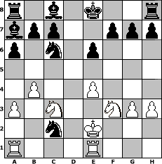 Nbc6 8. a3 a6 9. b4 Ba7 10. Bd3 Ng6 11. Bf4 Nxf4 12. g3 Nxd3+ 13. Ke2 Nxf2