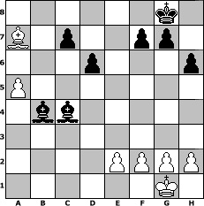 6k1/B1p2pp1/3p3p/P7/1bb5/8/4PPPP/6K1 - - - 0 33