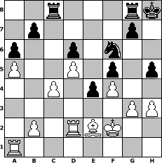 game notation in PGN-format [Event "Ende der Hitze, cooles Turnier"] [Site "www.myChess.de"] [Date "2018.09.15"] [Round "1"] [White "Erich"] [Black "nyffhans"] [ECO "B90"] [WhitemyELO "2137"] [BlackmyELO "2057"] [Result "1/2-1/2"] [TimeControl "10/2592000"] [WhiteDays "120"] [BlackDays "049"] [MyChessNo "113040"] 1. e4 c5 2. Nf3 d6 3. d4 cxd4 4. Nxd4 Nf6 5. Nc3 a6 6. Be3 e5 7. Nb3 Be6 8. Be2 Be7 9. O-O O-O 10. Qd3 Nc6 11. a3 Na5 12. Nxa5 Qxa5 13. Rfd1 Rac8 14. Qd2 Rfd8 15. Bf3 h6 16. h3 Kh8 17. Qe1 Rf8 18. a4 Nh7 19. Qe2 Bc4 20. Qd2 Be6 21. Be2 Rfd8 22. Nd5 Qxd2 23. Rxd2 Bxd5 24. exd5 Bg5 25. Bxg5 Nxg5 26. f3 f5 27. c4 e4 28. f4 Nh7 29. a5 Nf6 30. Kf2 h5 31. g3 Rg8 1/2-1/2 position notation in FEN-format 2r3rk/1p4p1/p2p1n2/P2P1p1p/2P1pP2/6PP/1P1RBK2/R7 - - - 1 32 Captured white pieces: Captured black pieces: Click on a captured piece in order to display the desired move!