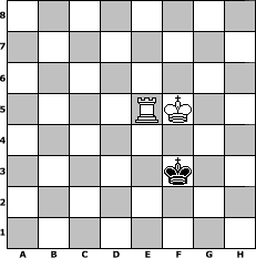 game notation in PGN-format [Event "Zwischendurch mal ein paar eigene Z"] [Site "www.myChess.de"] [Date "2009.02.11"] [Round "1"] [White "rikilatic"] [Black "hape50"] [ECO "D02"] [WhitemyELO "1386"] [BlackmyELO "1408"] [Result "1-0"] [TimeControl "10/1728000"] [WhiteDays "147"] [BlackDays "160"] [MyChessNo "52705"] 1. d4 d5 2. Nf3 h6 3. Qd3 Nf6 4. Ne5 e6 5. Nc3 Bd6 6. Qg3 g5 7. Nb5 a6 8. Nxd6+ cxd6 9. Ng4 Ne4 10. Qf3 Qe7 11. h3 Nc6 12. c3 Bd7 13. e3 O-O-O 14. Bd3 f5 15. Nh2 h5 16. Qe2 Kb8 17. Nf3 e5 18. Bxa6 bxa6 19. Qxa6 Be8 20. Qb5+ Qb7 21. Qxd5 Rh7 22. a4 Ne7 23. Qa2 Bf7 24. Qa3 Be6 25. Nd2 Ng6 26. a5 Bd5 27. a6 Qc6 28. Qa5 Rdd7 29. Ra4 Ra7 30. Qd8+ Qc8 31. Rb4+ Bb7 32. Qxc8+ Kxc8 33. axb7+ Rhxb7 34. Rxb7 Rxb7 35. Nxe4 fxe4 36. d5 Ne7 37. c4 Rb4 38. O-O Rxc4 39. Rd1 Kc7 40. Kh2 Nxd5 41. b3 Rc2 42. Ba3 Kc6 43. b4 Rxf2 44. b5+ Kxb5 45. Rxd5+ Kc4 46. Rxd6 Re2 47. Rg6 Rxe3 48. Bd6 Kd5 49. Bb8 Re1 50. Rxg5 Kd4 51. Bxe5+ Kd3 52. Rxh5 e3 53. Bg3 Rf1 54. Rd5+ Ke4 55. Re5+ Kd3 56. h4 Rc1 57. h5 e2 58. h6 Rc8 59. Re7 Rh8 60. Re6 Kd2 61. Rd6+ Ke3 62. Kh3 Ke4 63. Kh4 Kf5 64. Kh5 Rg8 65. h7 Rxg3 66. Rd5+ Kf4 67. Rd4+ Ke3 68. h8=Q e1=Q 69. Re4+ Kf2 70. Qf6+ Kxg2 71. Rxe1 Rh3+ 72. Kg6 Rg3+ 73. Kf7 Rf3 74. Re2+ Kg3 75. Kg6 Rxf6+ 76. Kxf6 Kf3 77. Re5 Kf4 78. Ke6 Kf3 79. Kf5 1-0 position notation in FEN-format 8/8/8/4RK2/8/5k2/8/8 - - - 6 79 Captured white pieces: Captured black pieces: Click on a captured piece in order to display the desired move!