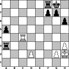 game notation in PGN-format [Event "Mal wieder Blackmar-Diemer-Gambit"] [Site "www.myChess.de"] [Date "2023.04.18"] [Round "1"] [White "Lohl"] [Black "Rotstift10"] [ECO "D00"] [WhitemyELO "1329"] [BlackmyELO "1692"] [Result "0-1"] [TimeControl "10/1728000"] [WhiteDays "80"] [BlackDays "59"] [MyChessNo "129853"] 1. d4 d5 2. e4 dxe4 3. Nc3 Nf6 4. f3 exf3 5. Nxf3 e6 6. a3 Nc6 7. Bc4 h6 8. O-O Be7 9. Bf4 a6 10. d5 exd5 11. Bb3 Nh5 12. Ne5 Nxf4 13. Nxc6 bxc6 14. Rxf4 O-O 15. Qh5 Bg5 16. Rf2 Be3 17. Raf1 Bxf2+ 18. Rxf2 Qe7 19. Re2 Qc5+ 20. Kh1 Be6 21. Nd1 Qd4 22. c3 Qg4 23. Qxg4 Bxg4 24. Re7 Rab8 25. Ba4 Bxd1 26. Bxd1 Rxb2 27. Rxc7 Rb1 28. h3 Rxd1+ 29. Kh2 Ra1 30. Rxc6 Rxa3 31. c4 dxc4 32. Rxc4 a5 0-1 position notation in FEN-format 5rk1/5pp1/7p/p7/2R5/r6P/3P2PK/8 - - - 0 33 Captured white pieces: Captured black pieces: Click on a captured piece in order to display the desired move!