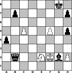 game notation in PGN-format [Event "Turnier in den M"] [Site "www.myChess.de"] [Date "2014.02.19"] [Round "1"] [White "borsti"] [Black "augustus"] [ECO "C01"] [WhitemyELO "1229"] [BlackmyELO "1341"] [Result "0-1"] [TimeControl "10/2592000"] [WhiteDays "30"] [BlackDays "30"] [MyChessNo "93055"] 1. e4 e6 2. d4 d6 3. Nf3 Bd7 4. Nc3 Be7 5. Bd3 c6 6. Bf4 Nf6 7. e5 dxe5 8. Bxe5 Nh5 9. Nd2 f6 10. Bxb8 g6 11. Bg3 f5 12. Be5 Bf6 13. Bxf6 Qxf6 14. Ne2 O-O 15. Nf3 c5 16. b3 cxd4 17. Nexd4 Rac8 18. c4 Rfe8 19. O-O Re7 20. Qd2 e5 21. Nc2 Bc6 22. Ng5 Rd8 23. Nh3 e4 24. Rad1 Red7 25. Ne1 exd3 26. Nxd3 f4 27. Qc2 Qf5 28. Ndxf4 Qxc2 29. Rde1 Rd1 30. Nxh5 Rxe1 31. Rxe1 gxh5 32. Nf4 Rd1 33. Kf1 Rxe1+ 34. Kxe1 Qe4+ 35. Ne2 Qb1+ 36. Kd2 Qxa2+ 37. Ke1 Bxg2 38. f4 Qxb3 39. Kf2 Qb2 40. c5 a5 41. f5 a4 0-1 position notation in FEN-format 6k1/1p5p/8/2P2P1p/p7/8/1q2NKbP/8 - - - 0 42 Captured white pieces: Captured black pieces: Click on a captured piece in order to display the desired move!