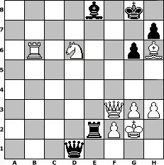game notation in PGN-format [Event "Amateur´s Mind"] [Site "www.myChess.de"] [Date "2025.03.20"] [Round "1"] [White "Ziegert"] [Black "zoli"] [ECO "C89"] [WhitemyELO "2006"] [BlackmyELO "2045"] [Result "1-0"] [TimeControl "10/2592000"] [WhiteDays "07"] [BlackDays "27"] [MyChessNo "133081"] 1. e4 e5 2. Nf3 Nc6 3. Bb5 a6 4. Ba4 Nf6 5. O-O Be7 6. Re1 b5 7. Bb3 O-O 8. c3 d5 9. exd5 Nxd5 10. Nxe5 Nxe5 11. Rxe5 Bb7 12. Qf3 c6 13. d4 Bd6 14. Re1 Qc7 15. Bxd5 cxd5 16. g3 Rfe8 17. Rxe8+ Rxe8 18. Be3 g5 19. Bxg5 Re1+ 20. Kg2 Bc8 21. Bd2 Re4 22. h3 Qd7 23. Qh5 Qe7 24. a4 b4 25. cxb4 Rxd4 26. b5 Qe4+ 27. Kh2 Qg6 28. Qxg6+ fxg6 29. Ra2 Bb7 30. a5 Rd3 31. bxa6 Bxa6 32. Bh6 Bc5 33. Kg2 Bc4 34. Ra4 Bb5 35. Rf4 d4 36. Rf6 Rb3 37. Kg1 Rxb2 38. Nd2 Ra2 39. Ne4 Be7 40. Rb6 Bd6 41. Nxd6 Be8 42. a6 d3 43. Kg2 Re2 44. a7 d2 45. a8=Q d1=Q 46. Qf3 1-0 position notation in FEN-format 4b1k1/7p/1R1N2pB/8/8/5QPP/4rPK1/3q4 - - - 1 46 Captured white pieces: Captured black pieces: Click on a captured piece in order to display the desired move!