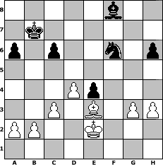 5b2/1k6/p1p2n1p/8/3Pp3/2P1B1PP/PP2K3/8 - - - 1 32
