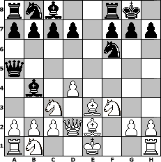 game notation in PGN-format [Event "°°°]^^[-Wilkommen im Jahr 2009-]^^[°°°"] [Site "www.myChess.de"] [Date "2009.01.03"] [Round "1"] [White "murphy12"] [Black "Holzhacker"] [ECO "A00"] [WhitemyELO "1650"] [BlackmyELO "2095"] [Result "0-1"] [TimeControl "10/864000"] [WhiteDays "11"] [BlackDays "19"] [MyChessNo "51347"] 1. Nc3 e5 2. f4 exf4 3. d4 Qh4+ 4. Kd2 Nf6 5. Nf3 Qh5 6. Ke1 Bd6 7. e4 fxe3 8. Bxe3 O-O 9. Qd2 Bb4 10. Be2 Qa5 0-1 position notation in FEN-format rnb2rk1/pppp1ppp/5n2/q7/1b1P4/2N1BN2/PPPQB1PP/RN2K2R - - - 5 11 Captured white pieces: ![]() ![]() ![]() ![]() ![]() ![]() ![]() ![]() ![]() ![]() ![]() ![]() ![]() ![]() ![]() Captured black pieces: ![]() ![]() ![]() ![]() ![]() ![]() ![]() ![]() ![]() ![]() ![]() ![]() ![]() ![]() ![]() Click on a captured piece in order to display the desired move!