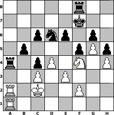 game notation in PGN-format [Event "BOMBASTIC BRAIN BUSTER"] [Site "www.myChess.de"] [Date "2019.11.02"] [Round "2"] [White "Mynona"] [Black "lotchi"] [ECO "D00"] [WhitemyELO "1480"] [BlackmyELO "1522"] [Result "0-1"] [TimeControl "10/3456000"] [WhiteDays "35"] [BlackDays "40"] [MyChessNo "116206"] 1. d4 d5 2. Bf4 Bf5 3. h3 e6 4. a3 Bd6 5. Bxd6 Qxd6 6. Nf3 Nf6 7. Nc3 O-O 8. g4 Be4 9. e3 Bxf3 10. Qxf3 Nbd7 11. Bd3 c6 12. g5 Ne8 13. O-O-O g6 14. h4 h5 15. Ne2 f5 16. Qf4 Qxf4 17. Nxf4 Kf7 18. Rd2 b5 19. b4 a6 20. c3 a5 21. bxa5 Rxa5 22. Ra2 Nb6 23. Kc2 Nc4 24. Bxc4 dxc4 25. Rha1 Nd6 26. a4 Rxa4 0-1 position notation in FEN-format 5r2/5k2/2pnp1p1/1p3pPp/r1pP1N1P/2P1P3/R1K2P2/R7 - - - 0 27 Captured white pieces: Captured black pieces: Click on a captured piece in order to display the desired move!