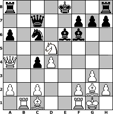 game notation in PGN-format [Event "Frohes Fest und spannende Spiele"] [Site "www.myChess.de"] [Date "2018.12.21"] [Round "1"] [White "sprinterde"] [Black "UPS"] [ECO "A34"] [WhitemyELO "1738"] [BlackmyELO "1720"] [Result "1-0"] [TimeControl "10/864000"] [WhiteDays "20"] [BlackDays "00"] [MyChessNo "113777"] 1. c4 c5 2. Nc3 e6 3. e3 Nf6 4. Nf3 Nc6 5. g3 a6 6. Bg2 d5 7. cxd5 exd5 8. O-O Be6 9. Ng5 Be7 10. d4 c4 11. b3 b5 12. bxc4 bxc4 13. Qa4 Qd7 14. Rb1 Qc7 15. e4 dxe4 16. Ngxe4 Nd5 17. Nf6+ Bxf6 18. Nxd5 1-0 position notation in FEN-format r3k2r/2q2ppp/p1n1bb2/3N4/Q1pP4/6P1/P1P2PBP/1RB2RK1 - kq - 0 18 Captured white pieces: Captured black pieces: Click on a captured piece in order to display the desired move!