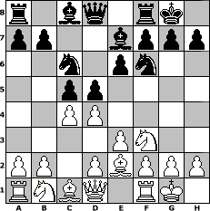 game notation in PGN-format [Event "Blitz-Masters Gruppe B"] [Site "www.myChess.de"] [Date "2005.10.08"] [Round "1"] [White "Seneca"] [Black "Hugo165"] [ECO "A46"] [WhitemyELO "1668"] [BlackmyELO "1781"] [Result "1/2-1/2"] [TimeControl "10/86400"] [WhiteDays "01"] [BlackDays "01"] [MyChessNo "18297"] 1. d4 Nf6 2. Nf3 d5 3. e3 c5 4. c3 e6 5. Be2 Be7 6. O-O O-O 7. c4 Nc6 1/2-1/2 position notation in FEN-format r1bq1rk1/pp2bppp/2n1pn2/2pp4/2PP4/4PN2/PP1PBPPP/RNBQ1RK1 - - - 1 8 Captured white pieces: ![]() ![]() ![]() ![]() ![]() ![]() ![]() ![]() ![]() ![]() ![]() ![]() ![]() ![]() ![]() Captured black pieces: ![]() ![]() ![]() ![]() ![]() ![]() ![]() ![]() ![]() ![]() ![]() ![]() ![]() ![]() ![]() Click on a captured piece in order to display the desired move!