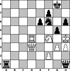 game notation in PGN-format [Event "Elisa l"] [Site "www.myChess.de"] [Date "2012.05.26"] [Round "1"] [White "Joschi"] [Black "Tomino"] [ECO "B17"] [WhitemyELO "1603"] [BlackmyELO "1684"] [Result "0-1"] [TimeControl "10/1728000"] [WhiteDays "20"] [BlackDays "20"] [MyChessNo "81843"] 1. e4 c6 2. d4 d5 3. Nc3 dxe4 4. Nxe4 Nd7 5. Nf3 Ngf6 6. Ng3 e6 7. Bg5 h6 8. Bd2 c5 9. Bb5 a6 10. Bxd7+ Bxd7 11. dxc5 Bxc5 12. O-O Bb5 13. Re1 Qb6 14. Be3 Rd8 15. Bxc5 Qxc5 16. Qc1 O-O 17. c3 Rd5 18. Nd4 Rfd8 19. Nxb5 axb5 20. Qf4 Rd2 21. Rab1 Rc2 22. Rec1 Rdd2 23. Rxc2 Rxc2 24. Qf3 b4 25. h3 bxc3 26. bxc3 Rxa2 27. Rxb7 Qd6 28. Rb4 Nd5 29. Rd4 Qc7 30. c4 Ra1+ 31. Kh2 Nb6 32. Qd3 Ra8 33. Qe4 Rc8 34. Kg1 Nxc4 35. Ne2 Nb6 36. g3 Nd5 37. Qd3 Ra8 38. Nf4 Ra1+ 39. Kg2 Qc1 40. Kf3 Qh1+ 41. Kg4 Nf6+ 42. Kh4 g5# 0-1 position notation in FEN-format 6k1/5p2/4pn1p/6p1/3R1N1K/3Q2PP/5P2/r6q - - - 0 43 Captured white pieces: Captured black pieces: Click on a captured piece in order to display the desired move!