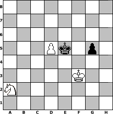 game notation in PGN-format [Event "Sommergl"] [Site "www.myChess.de"] [Date "2015.05.28"] [Round "1"] [White "Joschi"] [Black "miu"] [ECO "C13"] [WhitemyELO "1536"] [BlackmyELO "1588"] [Result "1/2-1/2"] [TimeControl "10/864000"] [WhiteDays "60"] [BlackDays "58"] [MyChessNo "99362"] 1. e4 e6 2. d4 d5 3. Nc3 Nf6 4. Bg5 Be7 5. exd5 exd5 6. Nf3 c6 7. Be2 Bg4 8. h3 Bh5 9. g4 Bg6 10. Ne5 Nbd7 11. Nxg6 hxg6 12. Qd3 Nxg4 13. Bxg4 Bxg5 14. O-O O-O 15. Rae1 Nf6 16. f4 Bh4 17. Re2 Qd6 18. Rg2 Nxg4 19. hxg4 Rae8 20. Qh3 Qe7 21. Rh2 g5 22. fxg5 Qxg5 23. Qxh4 Qxh4 24. Rxh4 b5 25. Kg2 b4 26. Na4 Re2+ 27. Rf2 Rfe8 28. Nc5 g6 29. Nd7 R8e6 30. Ne5 Rxf2+ 31. Kxf2 c5 32. c3 bxc3 33. bxc3 cxd4 34. cxd4 Ra6 35. Ke3 Rxa2 36. Rh1 Kg7 37. Rf1 f6 38. Nd7 Ra3+ 39. Ke2 Ra6 40. Nc5 Ra3 41. Rf3 Rxf3 42. Kxf3 g5 43. Ke3 Kg6 44. Na6 f5 45. gxf5+ Kxf5 46. Nc7 a5 47. Nxd5 a4 48. Nc3 a3 49. d5 Ke5 50. Kf3 a2 51. Nxa2 1/2-1/2 position notation in FEN-format 8/8/8/3Pk1p1/8/5K2/N7/8 - - - 0 51 Captured white pieces: Captured black pieces: Click on a captured piece in order to display the desired move!