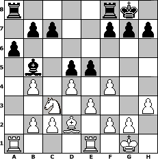 game notation in PGN-format [Event "Lapislazuli"] [Site "www.myChess.de"] [Date "2022.04.10"] [Round "1"] [White "borsti"] [Black "hsvler"] [ECO "A03"] [WhitemyELO "1259"] [BlackmyELO "1347"] [Result "1-0"] [TimeControl "10/864000"] [WhiteDays "20"] [BlackDays "09"] [MyChessNo "125237"] 1. f4 d5 2. d4 Nf6 3. e3 Nc6 4. Bb5 Bd7 5. Nc3 e6 6. Nf3 Be7 7. O-O O-O 8. Bd2 a6 9. Bxc6 Bxc6 10. Ne5 Qd6 11. a3 Nd7 12. Nxd7 Qxd7 13. Qg4 e5 14. Qxd7 Bxd7 15. h3 Bb5 16. Rfe1 Bb4 17. axb4 1-0 position notation in FEN-format r4rk1/1pp2ppp/p7/1b1pp3/1P1P1P2/2N1P2P/1PPB1PP1/R3R1K1 - - - 0 17 Captured white pieces: Captured black pieces: Click on a captured piece in order to display the desired move!