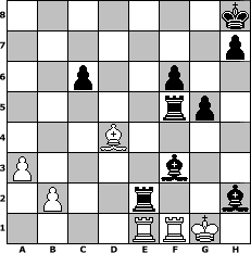 game notation in PGN-format [Event "Onyx"] [Site "www.myChess.de"] [Date "2022.07.05"] [Round "1"] [White "lotchi"] [Black "kalle"] [ECO "B20"] [WhitemyELO "1360"] [BlackmyELO "1577"] [Result "0-1"] [TimeControl "10/1728000"] [WhiteDays "20"] [BlackDays "20"] [MyChessNo "126354"] 1. e4 c5 2. c4 g6 3. d3 Bg7 4. Nc3 Nc6 5. g4 d6 6. Nd5 e6 7. Ne3 Nf6 8. Bg2 O-O 9. Nf3 d5 10. exd5 exd5 11. cxd5 Nxd5 12. Nxd5 Qxd5 13. O-O Bxg4 14. h3 Bh5 15. a3 Rad8 16. Nh2 Qxd3 17. Qxd3 Rxd3 18. Bxc6 bxc6 19. Rb1 Bd4 20. Kh1 Rxh3 21. f3 Rg3 22. Bf4 Rh3 23. Kg2 Rh4 24. Kg3 Bf6 25. Rbd1 g5 26. Bd6 Re8 27. Ng4 Bd8 28. Nh6+ Kh8 29. Nf5 Rf4 30. Bxc5 Rxf5 31. Bxa7 Bc7+ 32. Kg2 Re2+ 33. Kg1 Bxf3 34. Bd4+ f6 35. Rde1 Bh2# 0-1 position notation in FEN-format 7k/7p/2p2p2/5rp1/3B4/P4b2/1P2r2b/4RRK1 - - - 2 36 Captured white pieces: Captured black pieces: Click on a captured piece in order to display the desired move!