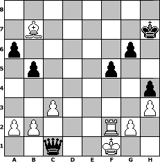 game notation in PGN-format [Event "Sommer 2019"] [Site "www.myChess.de"] [Date "2019.07.17"] [Round "1"] [White "Joschi"] [Black "alibengali"] [ECO "C78"] [WhitemyELO "1487"] [BlackmyELO "1701"] [Result "0-1"] [TimeControl "10/2592000"] [WhiteDays "120"] [BlackDays "116"] [MyChessNo "115404"] 1. e4 e5 2. Nf3 Nc6 3. Bb5 a6 4. Ba4 Nf6 5. O-O b5 6. Bb3 Bb7 7. Re1 Bc5 8. h3 O-O 9. c3 d5 10. exd5 Nxd5 11. Nxe5 Nxe5 12. Rxe5 Bxf2+ 13. Kh1 Bg3 14. Bxd5 Bxe5 15. Bxb7 Rb8 16. Bf3 c5 17. d3 Re8 18. Na3 Bg3 19. Nc2 Rb6 20. Be3 Rd6 21. Bxc5 Rxd3 22. Qf1 Rd2 23. Rc1 Rxc2 24. Rxc2 Re1 25. Qxe1 Bxe1 26. Re2 Bg3 27. Bd4 Qd7 28. Bg4 f5 29. Bf3 g6 30. Kg1 h5 31. Kf1 h4 32. Rd2 Qe6 33. Bf2 Kh7 34. Bd5 Qe5 35. Bb7 Qf4 36. Rc2 Bxf2 37. Rxf2 Qc1+ 0-1 position notation in FEN-format 8/1B5k/p5p1/1p3p2/7p/2P4P/PP3RP1/2q2K2 - - - 1 38 Captured white pieces: Captured black pieces: Click on a captured piece in order to display the desired move!