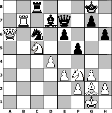 game notation in PGN-format [Event "Katalanische Verteidigung"] [Site "www.myChess.de"] [Date "2015.02.07"] [Round "1"] [White "LouisaN"] [Black "Knight"] [ECO "E00"] [WhitemyELO "1481"] [BlackmyELO "1258"] [Result "1-0"] [TimeControl "10/2592000"] [WhiteDays "84"] [BlackDays "00"] [MyChessNo "98015"] 1. d4 Nf6 2. c4 e6 3. g3 d5 4. Nf3 dxc4 5. Bg2 Nc6 6. O-O Bd6 7. Bg5 Rb8 8. Bxf6 Qxf6 9. e3 O-O 10. Nbd2 b5 11. b3 Na5 12. bxc4 bxc4 13. Qc2 Bb4 14. Rfb1 c3 15. Ne4 Qe7 16. a3 Nc6 17. axb4 Nxb4 18. Qxc3 Bd7 19. Qxc7 Rfc8 20. Qxa7 h6 21. Nc5 Nc6 22. Qa6 Rxb1+ 23. Rxb1 f5 24. Rb7 1-0 position notation in FEN-format 2r3k1/1R1bq1p1/Q1n1p2p/2N2p2/3P4/4PNP1/5PBP/6K1 - - - 1 24 Captured white pieces: Captured black pieces: Click on a captured piece in order to display the desired move!