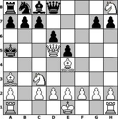 game notation in PGN-format [Event "Winterende2014"] [Site "www.myChess.de"] [Date "2014.03.06"] [Round "1"] [White "Andylein1989"] [Black "Haneken"] [ECO "C41"] [WhitemyELO "1401"] [BlackmyELO "1037"] [Result "1-0"] [TimeControl "10/1728000"] [WhiteDays "40"] [BlackDays "33"] [MyChessNo "93369"] 1. e4 e5 2. Nf3 d6 3. Bc4 Nf6 4. Ng5 Nfd7 5. Nxf7 Qh4 6. Nxh8 Nc5 7. Qf3 Nxe4 8. Qf7+ Kd8 9. Qxf8+ Kd7 10. Qf7+ Kc6 11. Bd5+ Kc5 12. b4+ Kxb4 13. Ba3+ Ka4 14. Bxe4 Qd8 15. Nc3+ Ka5 16. Qd5+ 1-0 position notation in FEN-format rnbq3N/ppp3pp/3p4/k2Qp3/4B3/B1N5/P1PPPPPP/R3K2R - KQ - 4 16 Captured white pieces: Captured black pieces: Click on a captured piece in order to display the desired move!