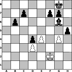 6k1/2p2pp1/1p4b1/7p/3pP1P1/3P4/5K2/8 - - - 0 49