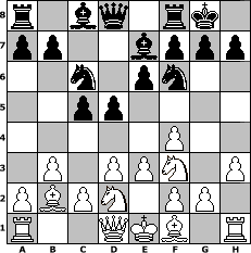 game notation in PGN-format [Event "In Memorium Michael Knopf 3"] [Site "www.myChess.de"] [Date "2014.05.01"] [Round "1"] [White "muellerh"] [Black "lasker"] [ECO "A03"] [WhitemyELO "1545"] [BlackmyELO "1200"] [Result "1-0"] [TimeControl "10/2592000"] [WhiteDays "28"] [BlackDays "00"] [MyChessNo "94251"] 1. f4 d5 2. d3 e6 3. Nf3 c5 4. b3 Nf6 5. Bb2 Be7 6. e3 O-O 7. h3 Nc6 8. Nbd2 1-0 position notation in FEN-format r1bq1rk1/pp2bppp/2n1pn2/2pp4/5P2/1P1PPN1P/PBPN1PP1/R2QKB1R - KQ - 2 8 Captured white pieces: Captured black pieces: Click on a captured piece in order to display the desired move!